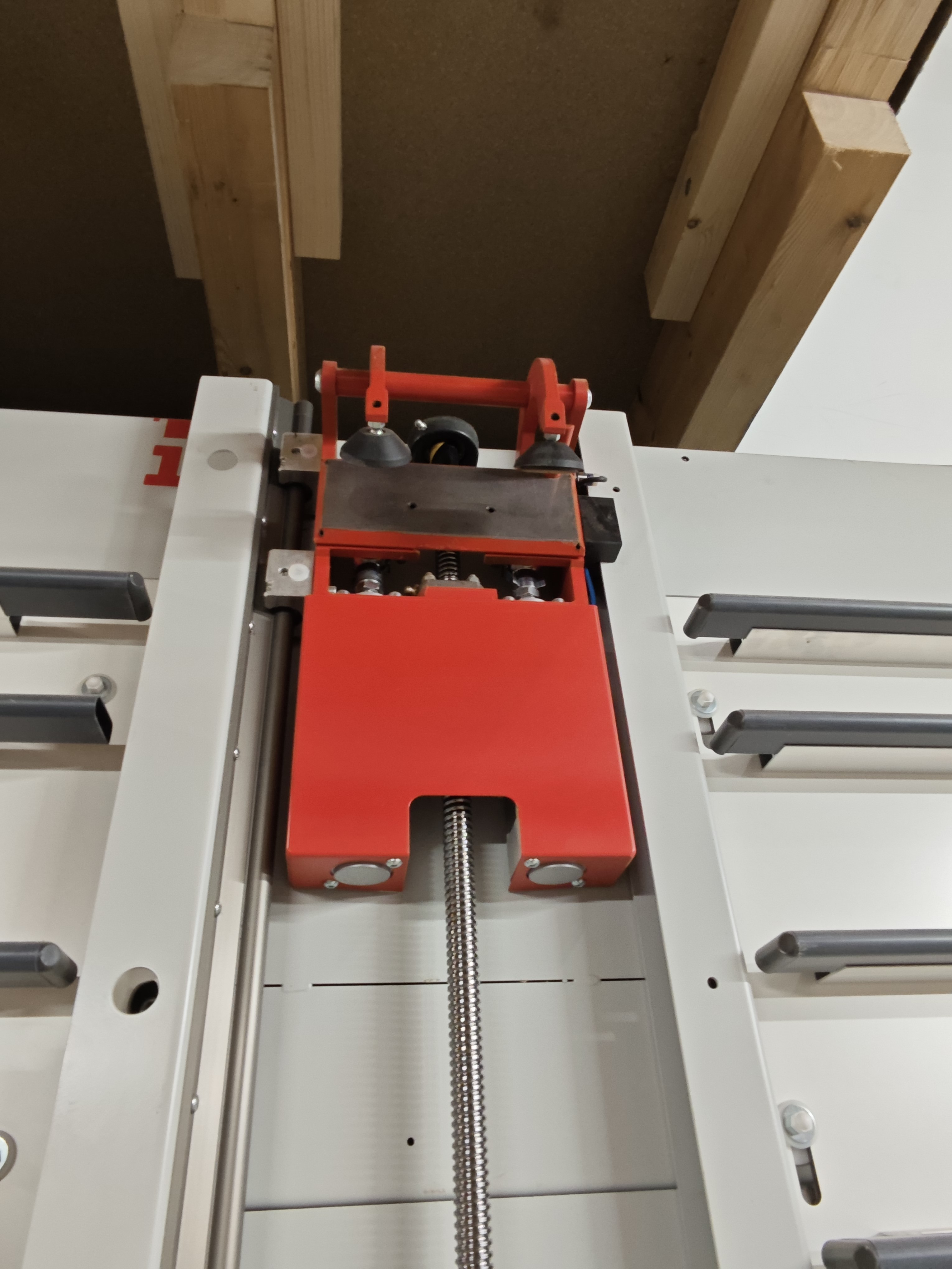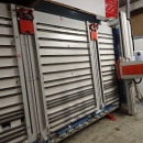 Ausstattungsmerkmale: - ADVANCE Klemmsystem mit 2 pneumatischen Klemmzangen, die über vertikalen Achsen motorisch auf einer Kugelumlaufspindel von oben nach unten verfahren. Die Zangen tragen Platten mit einem Gewicht von max.150 kg -Verwindungsfreies, freistehendes Maschinengestell -Rundstangenführung, vertikal und horizontal - pneumatisch ausweichendes Lattenrost - Feineinstellbarer Klappanschlag mit Anschlagverlängerung - Feineinstellung für horizontale Sägeschnitte über Handrad - Streifenschneidanschlag - Manuelle Programmierschiene mit 5 Nutsteine - Pneumatisches Eintauchen des Sägeaggregates - 25 Materialauflagerollen - 1 Auf- und 1 Abführrolle - pneumatische Werkstückklemmvorrichtung zwischen den ARollen - 3 Mittelauflageelemente, pneumatisch ausklappend - Pneumatische Sägekopfblockierung - Bedienpult mit Vorlagenhalter - Schaltereinheit am Sägeaggregat: Starttaster, Stopptaster - Werkzeugschrank - Beleuchtung Skala für vertikale Sägeschnitte