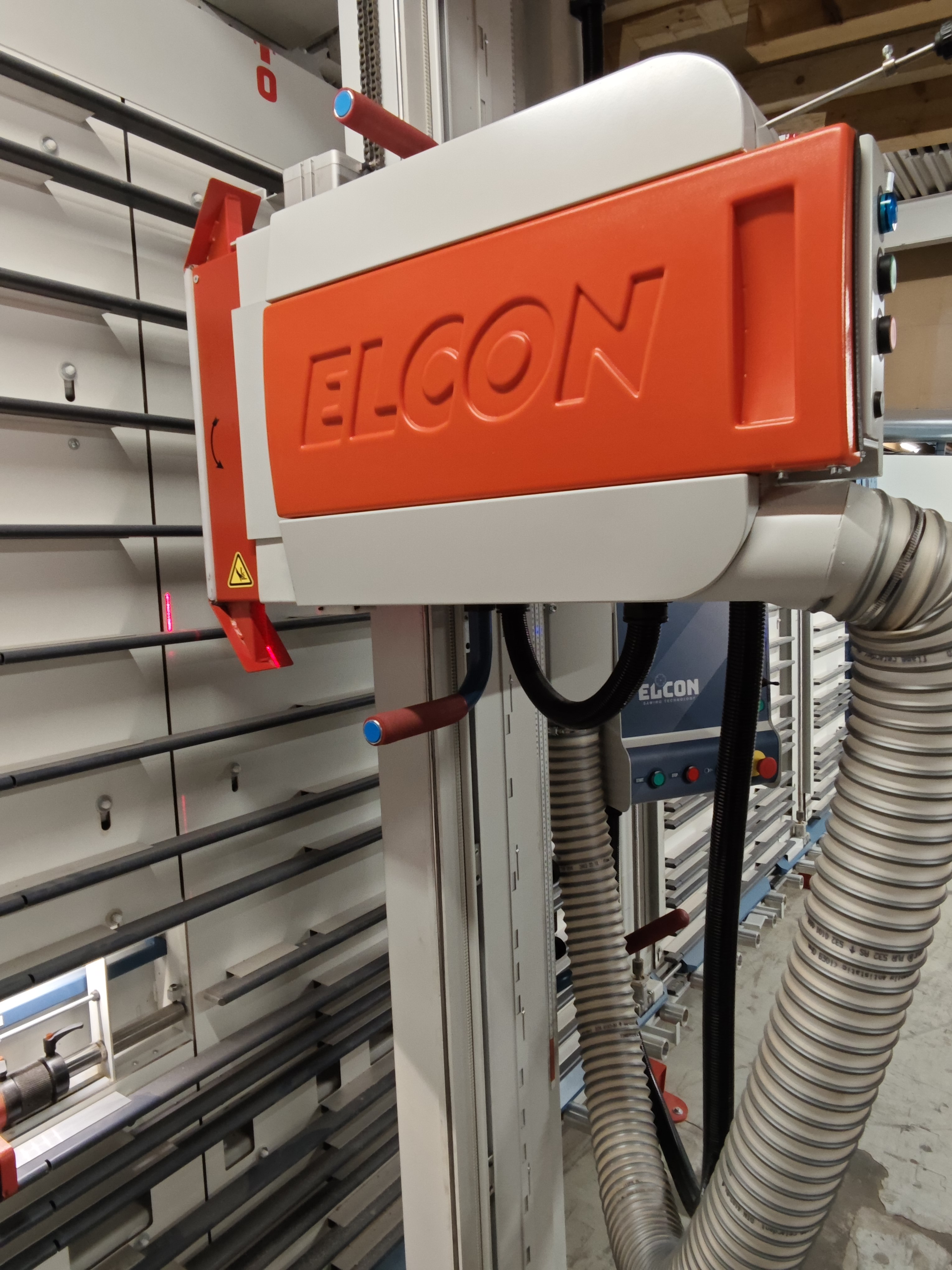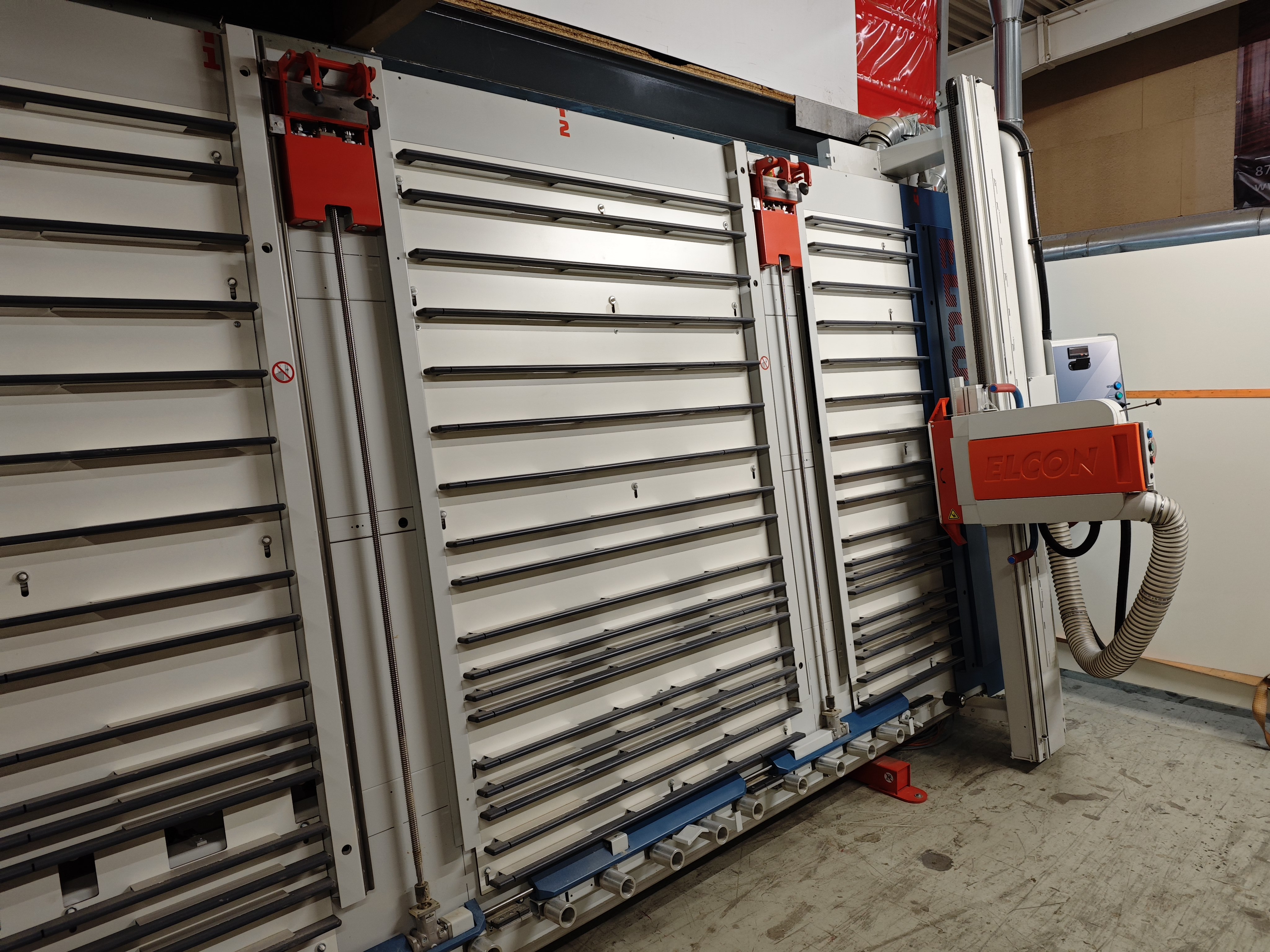 ELCON stehende Plattensäge Modell 215 DSXA mit Vorritzer + Platten-Klemmung + Laser