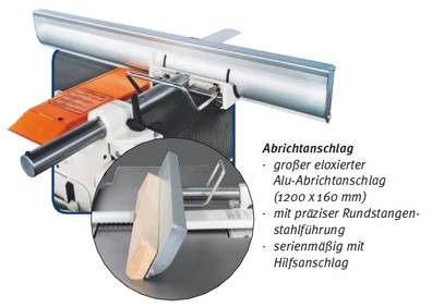 - die besonders langen Abrichttische ermöglichen leichtes Abrichten der Werkstücke