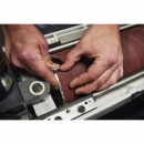 - Werkstückparallelität werkzeuglos schnell und einfach einstellbar durch Verstellung des Vorschubtisches, mit Memory-Funktion