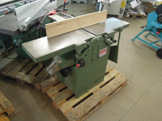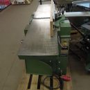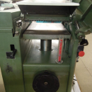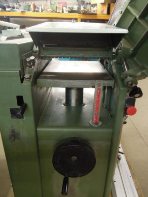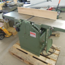 Kombinierte Abricht- Dickenhobelmaschine, mit schwenkbarem Abricthanschlag. Pendelschutzhaube über der Messerwelle. Messer mit 3 Streifenhobelmsssern