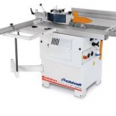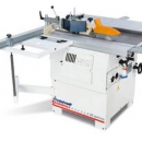 Kombinierte Säge-Fräsmaschine in Profi-Ausführung mit schwenkbarem Sägeblatt, schwenkbarer Frässpindel und Format-Schiebeschlitten.