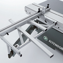 Das Altendorf Aggregat ist das maschinenbautechnische Kernstück einer jeden Säge. Dieses Kraftwerk wird nach neuester Fertigungstechnologie produziert. Die absolute Laufruhe wird durch das Auswuchten der komplett montierten Sägewelleneinheit und den verstärkten Einsatz von Gusselementen erreicht. Die hochpräzise Linearführung des Aggregats erfolgt über wartungsfreie Führungslager. Die massiven in Nut/Feder-Bauweise geführten Schwenksegmente ermöglichen die leichte und absolut winkelgenaue Schwenkung des gesamten Aggregats.