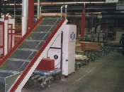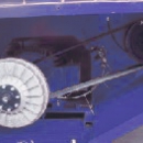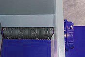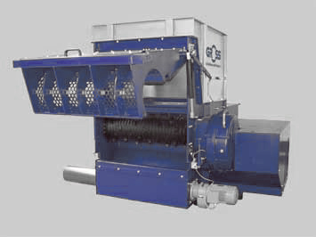 lastabhängig gesteuert auf den sich drehenden Rotor drückt. Die Zerkleinerung des Materials erfolgt zwischen den Rotor-messern und einem festen Gegenmesser. Der Vorschub ist mit Abstreifleisten versehen, die einen unerwünschten Materialeinzug zwischen Vorschub und Maschinengehäuse verhindern. Das Lochsieb mit unterschiedlichen Lochdurch-messern bestimmt die Schnitzel- oder Spänegröße.
