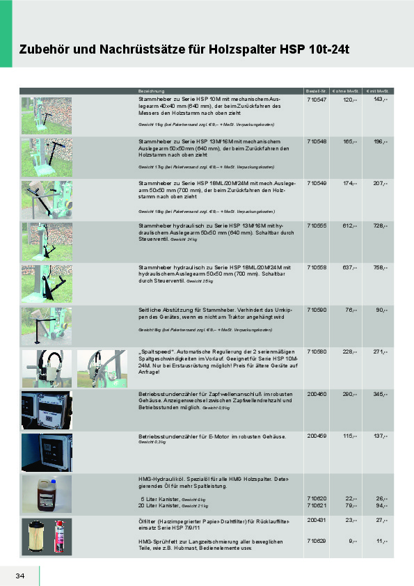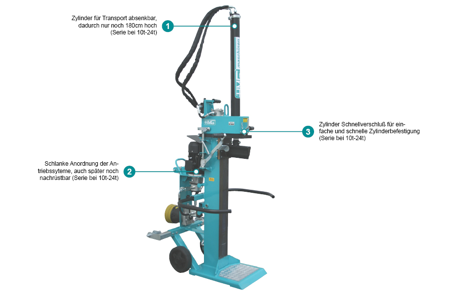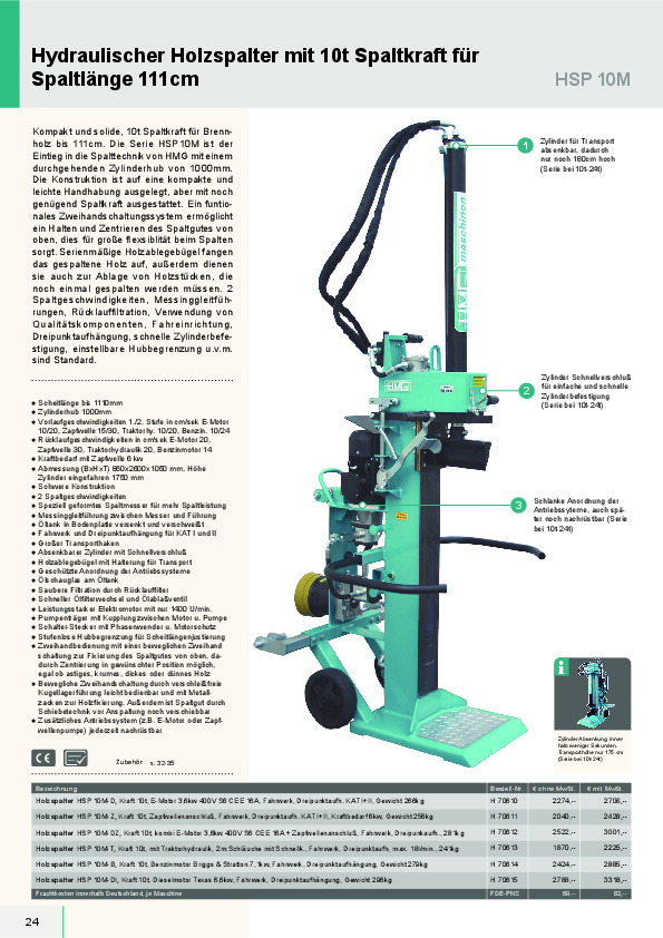| Holzspalter Typ | HSP 10M-D | HSP 10M-Z | HSP 10M-DZ | HSP 10M-T | HSP 10M-B |