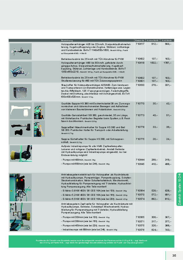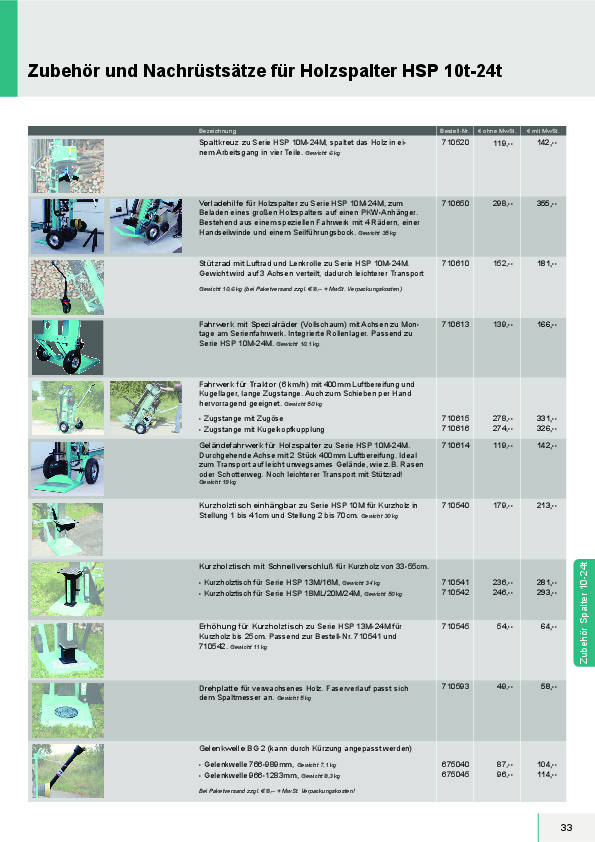 | Spaltkraft t | 10 | 10 | 10 | 10 | 10 |