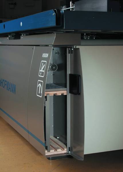 • 3 Absaugstutzen 120 mm Æ am Anschlag und unterhalb des Tisches; Mindestluftmenge 20 m³/min. bei 378 pa