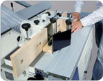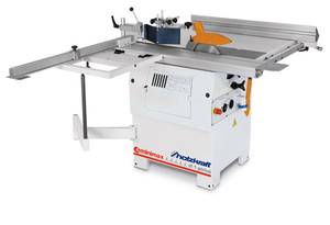 ST 1 genius - kombinierte Säge-Fräsmaschine mit schwenkbarem Sägeblatt, starrer Frässpindel und Format-Schiebeschlitten aus eloxiertem Aluminium.