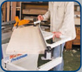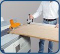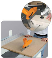 Tischausleger mit Aluminiumablänganschlag und verstellbarem Anschlagbacken für Platten und große Werkstücke