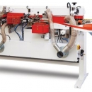 | Hochfrequenz Kombi-Frässtation, 2 leistungsstarke 0,27 kW Hochfrequenz-Motoren mit HM-WPL-Spezialfräsern, geeignet für Radius-, und Fasenfräsen, horizontale und vertikale Abtastung des Werkstückes, Aggregatverstellung ausgestattet mit Digitalzählern zur Einstellung auf unterschiedliche Kantenarten, 2 Späneabsaughauben mit zentralem Absaugstutzen Ø 100mm, Höhenverstellung des oberen Aggregates mit dem Oberdruck |