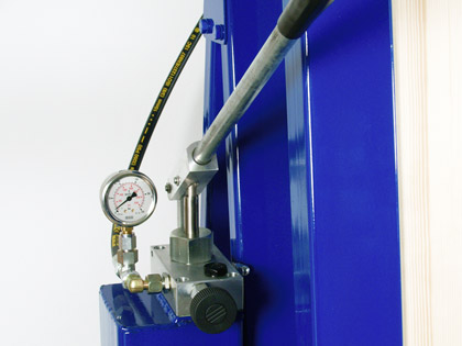 Rahmenpresse mit zentraler Handhydraulik. Robuste Zylinder mit einem Druck von 2,5 to.