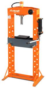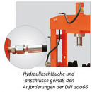 Kolbenvorschub der Werkstattpresse wahlweise durch hydraulische Handpumpe oder pneumatischen Fußhebels möglich